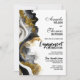 Feiern Sie die Freude an Ihrer jüngsten Verlobung und laden Sie Ihre Freunde und Lieben zu Ihrer Verlobungsfeier mit dieser stilvollen modernen, schwarz-goldfarbenen Marmoreinladung ein. (In dieser Aufforderung wurde kein tatsächlicher Glitzer verwendet.)