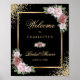 Black Gold Blush Bloral Brautparty Begrüßungszeich Poster