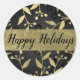 Black & Gold Botanical Merry Christmas Elegante Runder Aufkleber