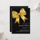 Klassischer schwarzer Hintergrund, mit einem großen goldenen Bogen dekoriert. Personalisieren und fügen Sie einen Namen und Party-Details hinzu.