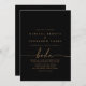 Diese klassische spanische Hochzeitseinladung aus schwarzem Gold ist perfekt für eine rustikale Hochzeit. Das schlichte und elegante Design zeichnet sich durch eine schicke und extravagante Schrift-Typografie in Gold aus.