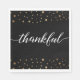 Fügen Sie Ihre Servietten diese Touch moderner Eleganz hinzu. Das Wort "Dankbar" in einem einfachen Skript handgeschriebenen Stil Schriftart mit langen Schwänzen auf schwarz mit Imitaten Gold drucken confetti. Ein trendiger und schicker Look. Probieren Sie es für besondere Feiertage wie Erntedank und Weihnachten, Firmenveranstaltungen.