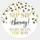 Sip Sip Hooray Baby ist auf dem Weg Baby Dusche bevorzugen Tag Aufkleber mit Schwarz-Gold Glitzer Konfetti Muster. Ideal für eine Babydusche, um Champagner oder Weinflaschen zu dekorieren.