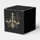 Dieses Design besticht durch eleganten schwarzen Hintergrund mit einem Vintagen goldenen Kronleuchter. Der goldene Kronleuchter aus Damast reflektiert seinen Schatten, der dem Schwarz gegenübersteht. Die Kombination aus Schwarz und Gold schafft einen eleganten, trendigen und schicken Stil. Elegantes Hochzeitsgunst-Box-Design mit modernen Elementen. Das einfache Einrichten der Typografie verleiht ihr einen besonderen Stil. Auch die passenden Hochzeitseinladungen und andere Schreibwaren sind verfügbar.