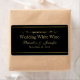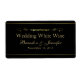 Die Mini-Weinetiketten für Hochzeitsfeiern sind für Sie bereit, sich mit Ihren eigenen Informationen zu personalisieren. Elegantes Schwarz mit goldfarbenen Akzent-Linien, oben und unten auf diesem horizontalen Label. Grafik eines goldfarbenen eleganten blüh, oben, und angepasster goldgelber Text darunter. Personalisieren Sie den Text für Ihren Hochzeitsempfang. Ideal für Ihren Hochzeitstisch oder Gast-Favoriten.