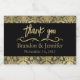 Schick Hochzeit Mini-Sekt oder Weinetiketten bereit für Sie zu personalisieren mit Ihren eigenen Informationen. Elegantes Schwarz mit goldenem Damast-Muster schmückt das obere und untere Teil dieses schwarzen horizontalen Etiketts. Personalisieren Sie den Text für Ihren Hochzeitsempfang. Ideal für Ihren Hochzeitstisch oder Gast-Favoriten.