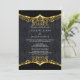 Einladung zur Hochzeit in Schwarz-Gold. Elegantes Damask-Design. Bitte beachten Sie alle flachen Bilder!