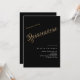 Eine moderne minimalistische Einladung Quinceañera. Klassischer schwarzer Hintergrund und das Wort Quinceanera geschrieben mit großen Buchstaben in Imitat Gold. Personalisieren und fügen Sie einen Namen und Party-Details hinzu.