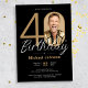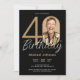 40. Geburtstag Gold Black Simple Elegant Foto Einladung. Feiern Sie Ihren Geburtstag in einem eleganten, modernen Stil mit unserem Design "Minimalistisch Chic", bei dem die Einfachheit der Minimalistischen Eleganz auf den Reiz der Individualisierung des Fotos zutrifft. Dieses schlichte Design ermöglicht es Ihrem Foto, die zentrale Bühne zu übernehmen und Ihre Feier einzigartig zu gestalten. Erschaffen Sie ein modernes Ambiente, das die Bedeutung dieses Meilensteins unterstreicht und gleichzeitig einen mühelos stilvollen Vorsprung bewahrt. Mit dem "Minimalistischen Chic" verkörpert Ihr Geburtstagsthema eine perfekte Verschmelzung von zeitgenössischer Eleganz und persönlicher Stimmung und schafft so die Bühne für ein unvergessliches Fest.