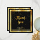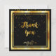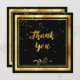 Eine schwarze Hintergrundfarbe und ein goldenes Imitat. Mit einem goldenen Konfetti regnen. Vorne eine handgeschriebene Stilschrift und der Text: Danke! und ein blumengeschmücktes Imitat Golddekoration. Zurück: Personalisieren Sie Ihre Danksagung und Ihren Namen