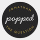 Er hat die Frage-Verlobung Hochzeit Rundsticker in Schwarz und Antike Gold. Dieser Artikel ist ideal für Verlobungsfeiern, um eine Tüte Popcorn in einer Hochzeitsempfangstasche oder als Gastgeschenk Hochzeit zu halten.