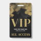 Alle Zugang Elegant Black Gold VIP Abzeichen. Ein Schwarz-Weiß-Design mit goldenen Akzenten (nicht wirklicher Schimmer oder Folie, nur Farbe). Ideal für Modenschauen, Konzerte, große Sonderveranstaltungen wie Konferenzen, Lautsprecher oder sogar eine Geburtstagsparty wie eine süße 16 oder eine Silvesterfeier. Es hat ein einfaches, modernes und dennoch elegantes Aussehen. Unten wird ein fett formatierter Serif-Schriftart mit einfacher Typografie zur Anzeige von VIP, Ereignisnamen, Datum und "Alle Zugangsdaten" vermischt. Alle Texte und Farben auf diesem Abzeichen können an Ihre Veranstaltung angepasst werden.
