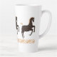 Hier ist eine attraktive latte Tasse mit einem skandinavischen Folklopferd, das sich rund um den Raum wiederholt. Das Pferd ist schwarz mit goldenen Flecken, eine Goldmane und ein Schwanz. Am unteren Ende der Tasse befindet sich eine Zierlinie in passendem Gold. Ideal für alle, die Volkskunst oder Pferde Lieben!