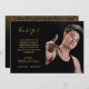 Ein eleganter und moderner Foto Abschluss danke Ihnen Karte. Schwarz gefärbter Hintergrund. Mit dem Text: Vielen Dank! geschrieben in einem handgeschriebenen Stil Skript, golden Buchstaben. Vorlagen für das Foto des Absolventen, vielen Dank und Namen, goldene Briefe. Zurück: schwarzer Hintergrund mit goldenen Konfetti.