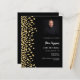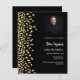 Modernes, elegantes und einladendes Hotel. Ein schwarzer Hintergrund mit goldenen Imitaten Konfetti. Personalisieren und fügen Sie Foto, einen Namen und Party Details. Weißer Text. 1 Blatt = 1 Einladung mit Druckkante bis Kante.
