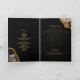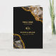 Eine wunderschöne Schwarz-Gold-Geode verleiht Kristall-Edelstein-Design mit goldenen Glitzer-Akzenten. Dieses elegante Marmordekor, das Schwarz und Gold kombiniert, schafft ein anspruchsvolles Amethyststück abstrakter Kunst. Die Kombination aus Schwarz und Gold schafft einen eleganten, trendigen und schicken Stil. Elegante Hochzeitsempfehlung für Service-Programm-Design mit modernen Elementen. Das einfache Einrichten der Typografie verleiht ihr einen besonderen Stil. Auch die passenden Hochzeitseinladungen und andere Schreibwaren sind verfügbar.