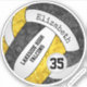 Dieser schwarz-goldfarbene und weiße Volleyballaufkleber mit dem Namen Team- und Schulmaskottchen weist ein blumenkaleidoskopisches Muster auf, das mit den schwarz-goldenen Volleyballplatten und einem künstlerischen abstrakten, mit den weißen Tafeln vermischten Schwirbelmuster kombiniert wird. Ihr Name und Teamname sind individuell einstellbar, ebenso wie ihre Trikotnummer auf einem winzigen weißen Volleyball - von katz_d_d_d_d_d_d_d_d_d_zynes