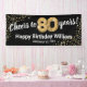 Elegantes Party-Banner zum achtzigsten Geburtstag mit einem stilvollen schwarzen Hintergrund, der in jede beliebige Farbe verändert werden kann, funkelnd Glitzer, achtzig goldenen Helliumballons und einer modernen Textvorlage zum 80. Geburtstag, die leicht zu personalisieren ist.
