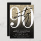 Moderner Glitzer 90. Geburtstagsparty Einladung. Feiern Sie neunzig im Stil mit diesem kühlen und schicken Design. In der oberen Hälfte befindet sich eine weiße "90" mit einem handgeschriebenen schwarzen Drehbuch "90", das auf einem Imitat mit einem goldenen Glitzer-Hintergrund stehend ist, der in einen schlichten schwarzen Farbverlauf verblasst. Der untere Teil ist schwarz, mit Party Details in einem sauberen serifenlosen weißen Schriftart für einen modernen und auffälligen Look. Schriftart- und Hintergrundfarben können an Ihr Thema angepasst werden. Bitte beachten Sie, dass der Glitzer ein bedrucktes Design ist, kein echter Glitzer oder Folie. Erhältlich als gedruckte Einladung, oder als digitaler Download können Sie per E-Mail senden oder lokal drucken.