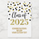 Graduation Party Custom Mini Weinflaschen Etiketten Klasse von 2025 mit schwarz und golden Glitzer Muster confetti.