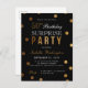 Klassische Überraschung Geburtstagsfeier Einladung mit Imitats Gold Glitzer Konfetti auf schwarz mit einem modernen typografischen Layout.