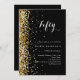 Für eine elegante 50. Geburtstagsfeier (oder jedes Alter). Ein klassischer schwarzer Hintergrund. Mit goldenen Imitaten Glitzer dekoriert. Personalisieren und fügen Sie einen Namen und Party-Details hinzu.