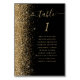 Der links Rand dieser eleganten modernen Hochzeitskarte weist einen Glitzer-Rahmen mit goldenen Imitaten auf. Das Wort "Tabelle" erscheint in goldfarbenem whimsical Handschrift-Skript auf einem schwarzen Hintergrund. Fügen Sie die Namen Ihrer Gäste hinzu, die jeder Tabelle zugeordnet sind.