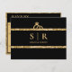 Schwarz und Gold Glitzer Streifen Hochzeit rsvp Postkarte. Personalisieren Sie die Monogramm-Initialen und die Einzelheiten der Hochzeit.
