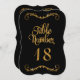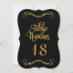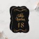 Elegante Kalligraphie-Schrift-Typografie in trendigem, aber zeitlosem schwarzem Hintergrund mit vergoldetem Glitzer mit individualisierbarer Tischnummer für einen eleganten formalen Hochzeitsempfang oder eine andere Veranstaltung. Die Skulpturen oben und unten wurden aus verzierten Vintagen Druckerverzierungen gefertigt und das Design fertig gestellt. Hergestellt von Audrey Jeanne Roberts, international lizenzierter Künstlerin und Designerin, Urheberrecht.
