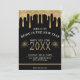 Black & Gold Glitzer Tropfen Silvester Party 2024 Einladung