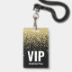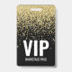 Black Gold Glitzer VIP Pass mit QR Code ID Abzeichen. Passen Sie bei Bedarf die Größe des Schriftartes an. Alle Details sind anpassbar.