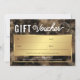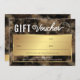 Glam Business Geschenkgutschein in schwarz und gold mit Platz für Ihren Firmennamen oder Logo und Firmendetails. Ideal als personalisierter Salon-Geschenkgutschein für Ihren Bar aus Glas, Braun oder Nageln. Die Imitate Gold Glitzer Effekte und Aquarellfarben Hintergrund gepaart mit einem trendigen Script-Schriftart fügen diesem Beauty-Salon-Gutschein-Vorlage ein luxuriöses Gefühl hinzu.