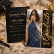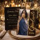 Schwarzes und goldenes Abschlussdesign mit einem leuchtenden Staubhintergrund, fließender Schriftname-Anzeige und raffiniertem Layout. Kombiniert mit einem vollständigen Foto auf der Vorderseite und sauberen Veranstaltungsdetails auf der Rückseite. Ideal für die Ausrichtung einer gepflegten Abschlussfeier mit Abendessen, Getränken und Tanz.