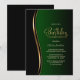 Laden Sie Ihre Freunde und Lieben mit dieser modernen, schwarzen, goldenen und grünen Geburtstagsfeier ein. Der anpassbare Textbereich in dieser Einladungsvorlage ermöglicht es Ihnen, mühelos alle notwendigen Details für Ihre Geburtstagsfeier, einschließlich Datum, Uhrzeit, Veranstaltungsort und UAWG, einzubinden. Für Ihre einmaligen Einladungen stehen verschiedene Papiertypen und Eckstile zur Verfügung, ebenso die Möglichkeit zum Download, wenn Sie ein digitales Format bevorzugen.