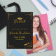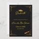 Elegant black and gold high school graduation announcement featuring a sophisticated art deco design on the front and a customizable photo option on the back.