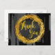 Ein schönes goldenes Buchstaben Sprichwort danke Ihnen auf der schwarzen Kreis Postkarte ist sehr elegant und klassisch, um Ihren Gästen zu danken.
