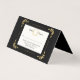 "Black Gold Laurel Leaf Wreath Moderne Platzkarte für Hochzeitssitze." Diese Platzkarten sind in einer Packung mit 25 Stück erhältlich. Sie müssen die Tischnummer und den Namen des Gastes angeben, um sie auszufüllen. Kunst von Audrey Jeanne Roberts, einer international anerkannten Künstlerin und Designerin. Urheberrecht.