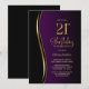 Black Gold Lila 21. Geburtstag Party Einladung