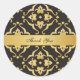Ein elegantes Dankeschön-Aufkleber mit einem floralen Damastmuster aus Lilien in schwarz und gold, mit einem goldenen Band. Passen Sie den Text an, um ihn für eine Hochzeit oder für einen anderen Anlass zu verwenden.