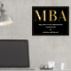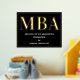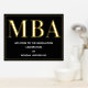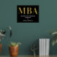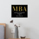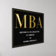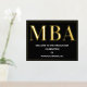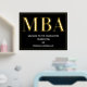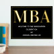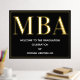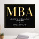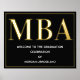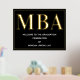 Eine MBA Graduierungsparty Begrüßungsschild mit Goldfolie, weißem Text und schwarzem Hintergrund. Fügen Sie einfach Ihre Informationen hinzu, fügen Sie dieses Poster in Ihren Warenkorb und feiern Sie diese große Leistung. Black Gold MBA Abschluss Begrüßungsgeschenk Plakatwerbung | ©Melissa Patton - Designer