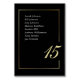 Diese minimale Schwarz-, Gold- und Weißkarte ist fett und elegant. Die Typografie-Tischnummer des Skripts wird durch einen Rahmen betont, der die Zahl umgrenzt. Fügen Sie die Namen Ihrer Gäste hinzu, um ein Sitzdiagramm zu erstellen.