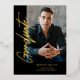 Feiern Sie Ihren Graduate mit diesem Foto Black Gold Modern Script Abschluss Gold Foil Einladung Postcard entworfen in schwarz, mit einem zentralen Foto, Graduate und Grad Name, Klasse und Schule in Gold Foil. Fügen Sie die Details der Graduierungspartei auf der Rückseite der Postkarte hinzu. Diese Einladung ist ideal für einen männlichen Absolvent wie Ihren Sohn, der von der Uni oder der Oberschule geschlossen wird. Wählen Sie zwischen Drucken und/oder einem sofortigen digitalen Download. Originelles Design von Ana Garza/Kardz Studio Designs. Wenn Sie Fragen haben, kontaktieren Sie mich bitte über den Zazzle Chat.