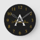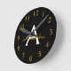 Black Gold Modernes Script Giron Monogram Name Runde Wanduhr