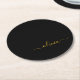 Black Gold Modernes Script Giron Monogram Name Runder Pappuntersetzer
