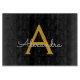 Schwarz und Gold einfache Script Monogram Name Cutting Board. Dies macht den perfekten Abschluss, Geburtstag, Hochzeit, Brautparty, Jubiläum, Babydusche oder Junggeselinnen-Abschied Geschenk für jemanden, die Lieben glamourösen Luxus und schicke Stile.