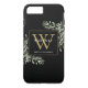 Elegante Aquarell Blätter Monogramm Name Handy Gehäuse mit einem goldenen Monogramm Initial auf einem schicken schwarzen Hintergrund. Entwickelt von Thisisnotme©