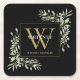 Eleganter Aquarell Blätter Monogramm Namenspapier Untersetzer mit einer Monogramm-Initial auf einem schicken schwarzen Hintergrund. Entwickelt von Thisisnotme©