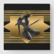 Black Gold Monogram Pattern & High Heels Quadratische Wanduhr