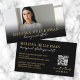 Berufliches Foto QR Code Unternehmen Horizontale Visitenkarte. Diese elegante und einfache Visitenkarte eignet sich ideal für Firmenmarken, kleine Unternehmen, Berater, Freiberufler oder alle beruflichen, die eine moderne, elegante Ästhetik suchen. Die Vorderseite zeigt Foto, Namen, Titel oder Firmennamen über einen schwarzen Farbverlauf am unteren Ende, mit gold-weißen Schriftart für einen eleganten Kontrast. Auf der Rückseite ist ein solider schwarzer Hintergrund mit goldfarbenen und weißen Schriftart und Details hervorgehoben, mit Ihren Kontaktinformationen über den verlassen und den QR-Code und optionalen Social Media Icons unten rechts. Typografie ist eine raffinierte Mischung aus handgeschriebener Skriptkalligraphie und einem klassischen SerifenSchriftart, die dem Design ein berufliches und dennoch stilvolles Aussehen verleiht. Vollständig anpassbar, können Sie Schriftart, Farben und Layout anpassen, um Ihre Marke Anzug.