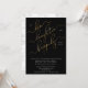 Dieses schöne, moderne Schwarz-weiße und Gold Script Marble Probe Dinner Invitation zeigt ein Imitat Goldblatt Kalligraphie Skript lesen 'To Liebe, Lachen, and Happily Ever After' als das wichtigste Design Element, auf einem schwarzen Hintergrund. Das Design wird durch den modernen All Cap Sans Serif Schriftart ergänzt, der die Probe Abendessen Zeit, Datum und Lage detailliert beschreibt. Auf der Rückseite der Dinner-Einladung befindet sich ein Imitat-Carrera-Marmor-Textur, um das schicke, raffinierte Aussehen zu vervollständigen.